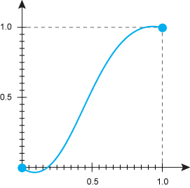 - Анимация начинается медленно, затем ускоряется и к концу движения опять замедляется. Аналогично cubic-bezier(0.25,0.1,0.25,1).