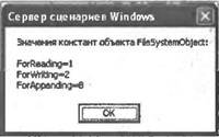 В результате выполнения сценария refer.wsf на экран выведется диалоговое окно с информацией о значениях констант объекта