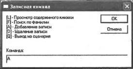 В этой главе на примере работы с записной книжкой будут рассмотрены три способа организации из сценария диалога с пользователем.